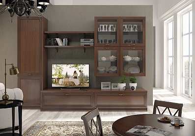 Шкаф Кантри с полками КА-011.00 (1 комплект), 2 выдвижными ящиками и штангой для одежды с зеркалом Валенсия