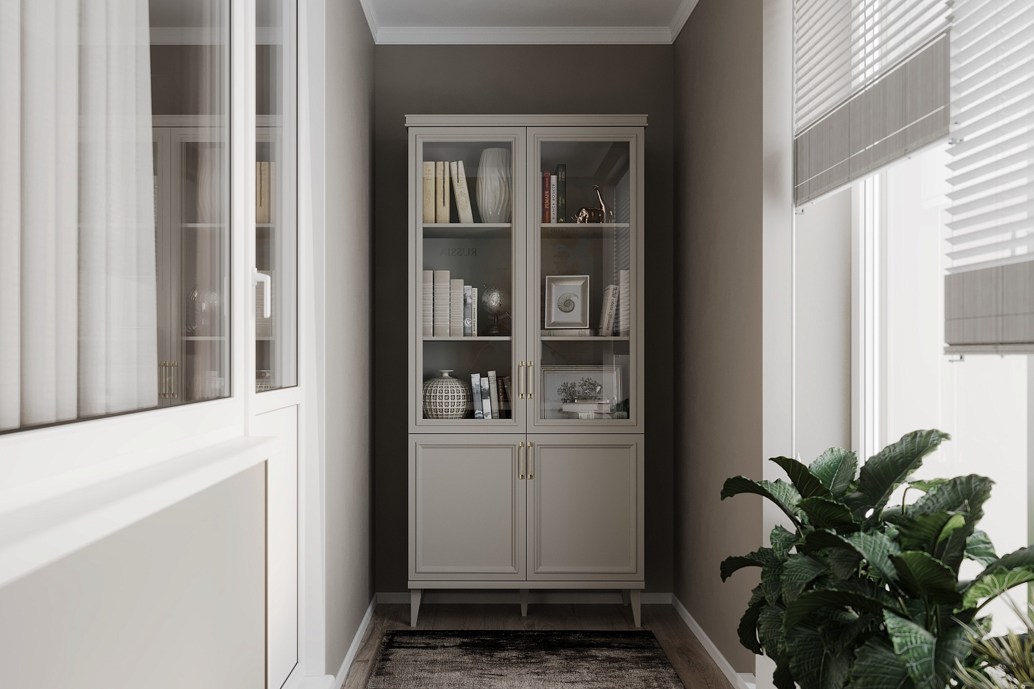 - Шкаф 2-створчатый с 2 стеклянными фасадами и 2 глухими фасадами;