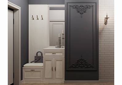 - В гостиной есть вся необходимая мебель для хранения: три напольных шкафа, тумба и две вместительные полки. Для самого важного всегда найдется место;