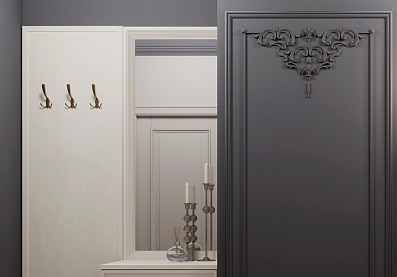 - Полка АГ-025.03 навешивается на стену на декоративных менсолодержателях (МакМарт);
