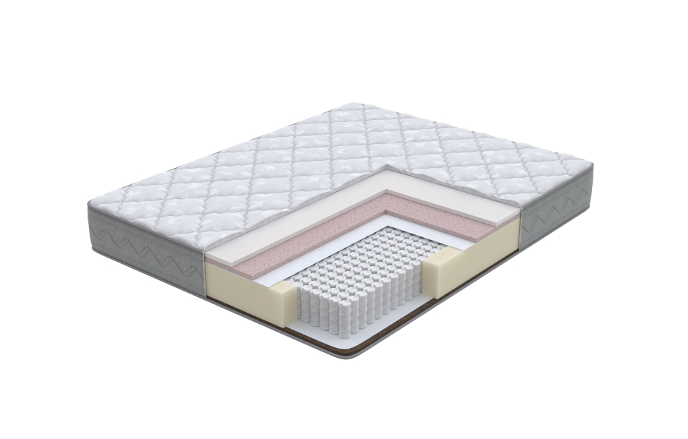 В составе комфортных слоев неолатекс в сочетании с эко ППУ с одной стороны и Би-кокос с другой стороны матраса. Защитным слоем при их взаимодействии с независимыми пружинами служит спандбонд.