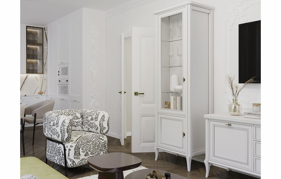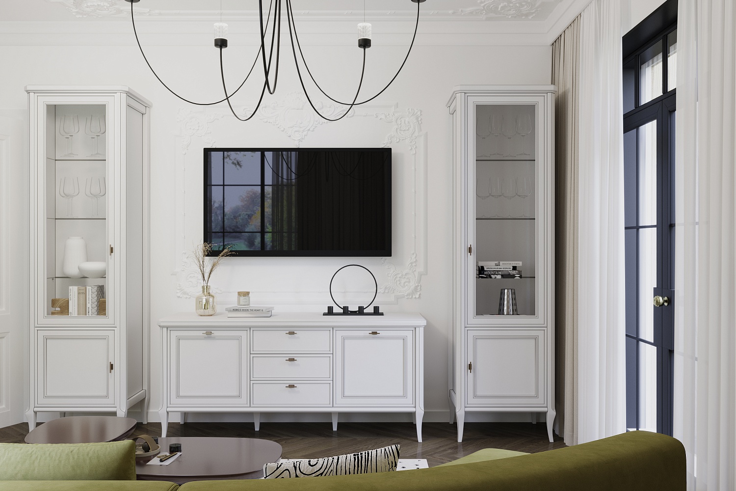 – описание: назначение для гостиной, цвет бело-серый, стиль неоклассика, размер 214.8x287x50.5 см.